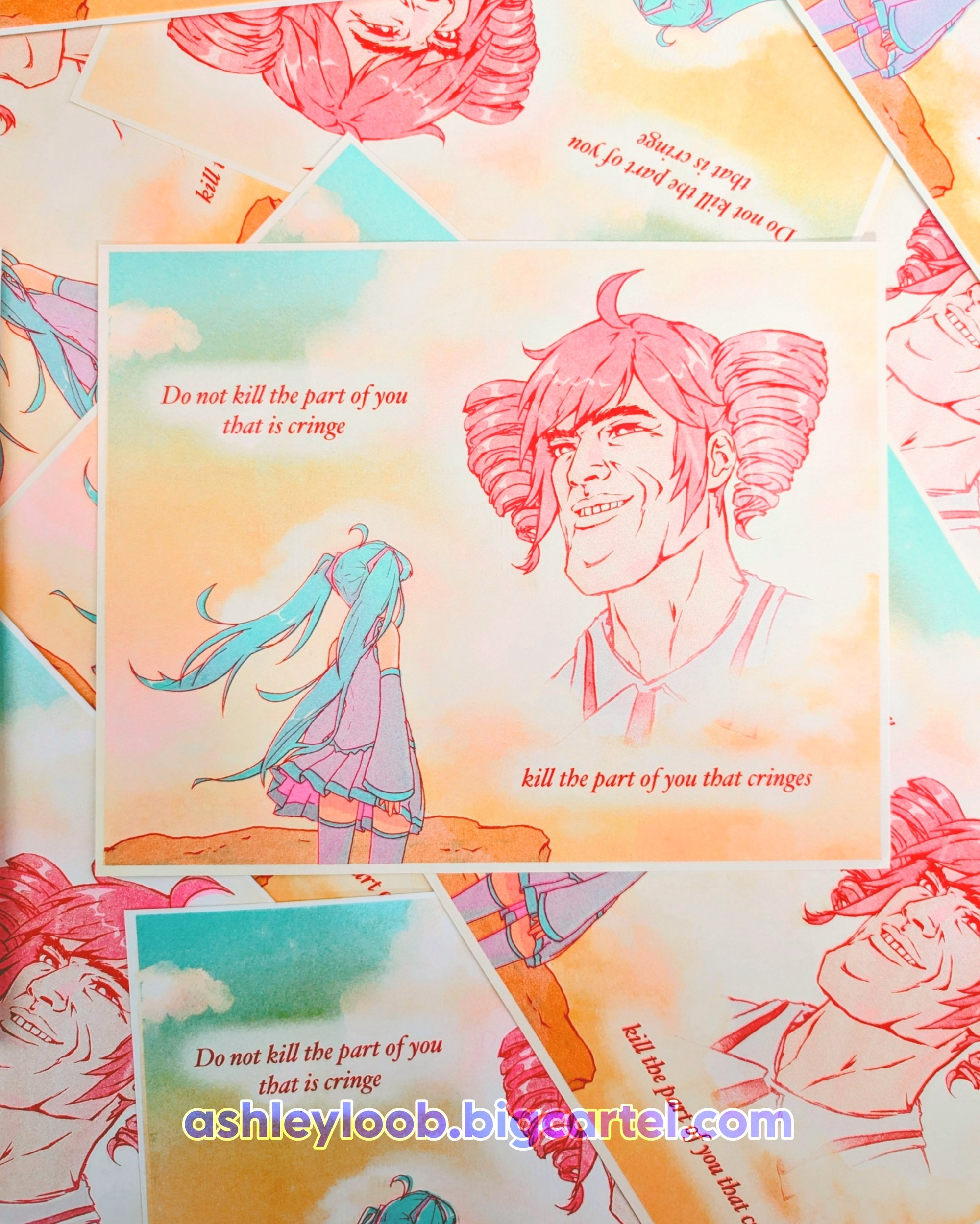 print size is approx 10" x 8", 4 color risograph print (mint, bright red, sunflower, fluo pink)